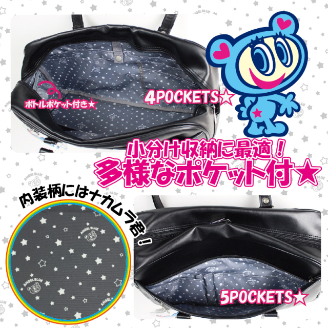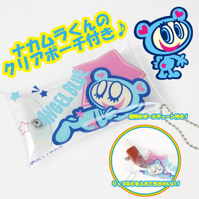 1989年に誕生し、1990年代から2000年代前半にかけて小中学生の女子から人気だったブランドがSNSを通じて若い世代に再ブレイク中♪ リップなどを入れてもかわいい!ナカムラくんのクリアポーチつき♪ バッグの裏面両サイドにはぬいぐるみ等がいっぱいつけられるデイジーチェーン付で全部で12か所もつけれちゃう! CUTEなANGEL BLUEのロゴ刺繍が施されており、内装にはナカムラくんの顔を散りばめたPOPな星柄。 引手にもANGEL BLUEの刻印が入ってます。
