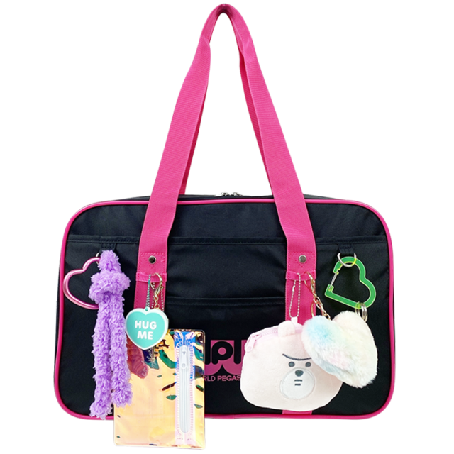 <スクールバッグ> 通称”ワッペ”のカラースクールバッグ。 女子高生モデルと一緒に作り上げた、拘りがいっぱい詰まったカラースクールバッグ。 丈夫なナイロン素材でありながらソフトな質感がgood。 前面にはDカンとループ、背面にもループが付いていて、チャームやぬいぐるみが取り付けやすく自分好みにアレンジできる。 内装は、メイン収納の中だけでも9個ものポケットが付いていて、前面のファスナー収納の中には更にペンさしなどの小物ポケットも! (※チャームやキーホルダーなどは付属しておりません)