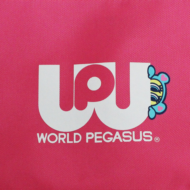 <スクールバッグ> 大人気のWORLD PEGASUS(通称:ワッペ)のスクールバッグとANGEL BLUEのコラボが実現‼ オリジナル柄の内装にはたくさんのポケットがついており、全部合わせると13ポケットも‼ メインのワッペのロゴからはナカムラくんが覗いています♪ Dカンとループがついているのでお好きなキーホルダー等をつけて自分好みにカスタマイズして楽しめます。 かわいさと実用性を兼ね備えたスクールバッグです。